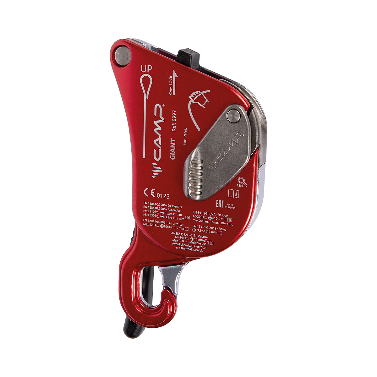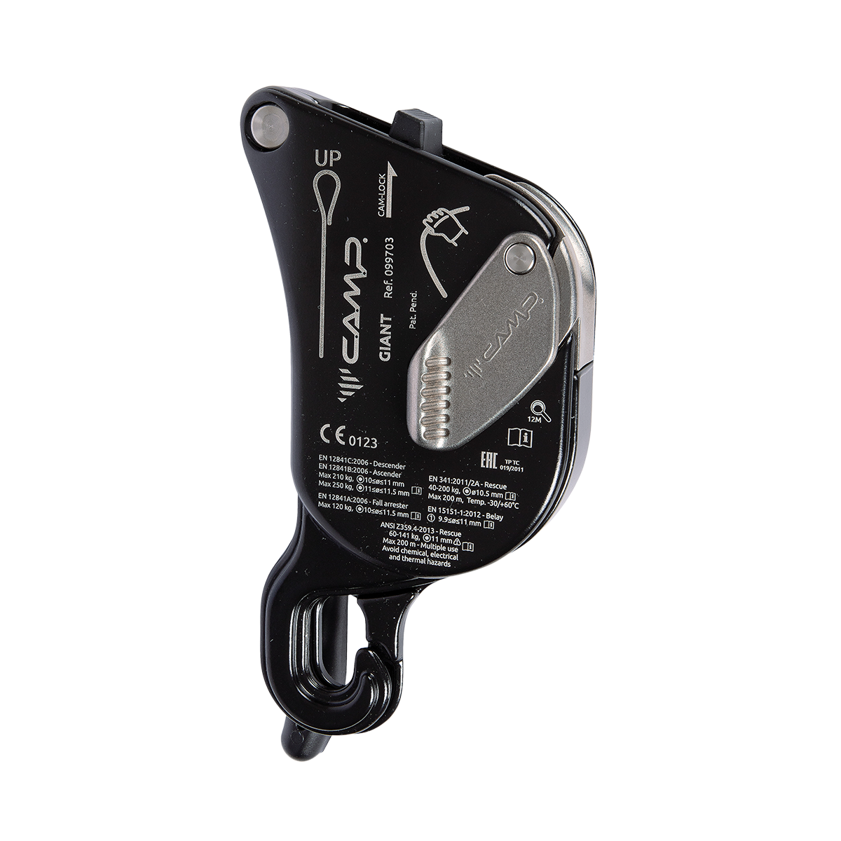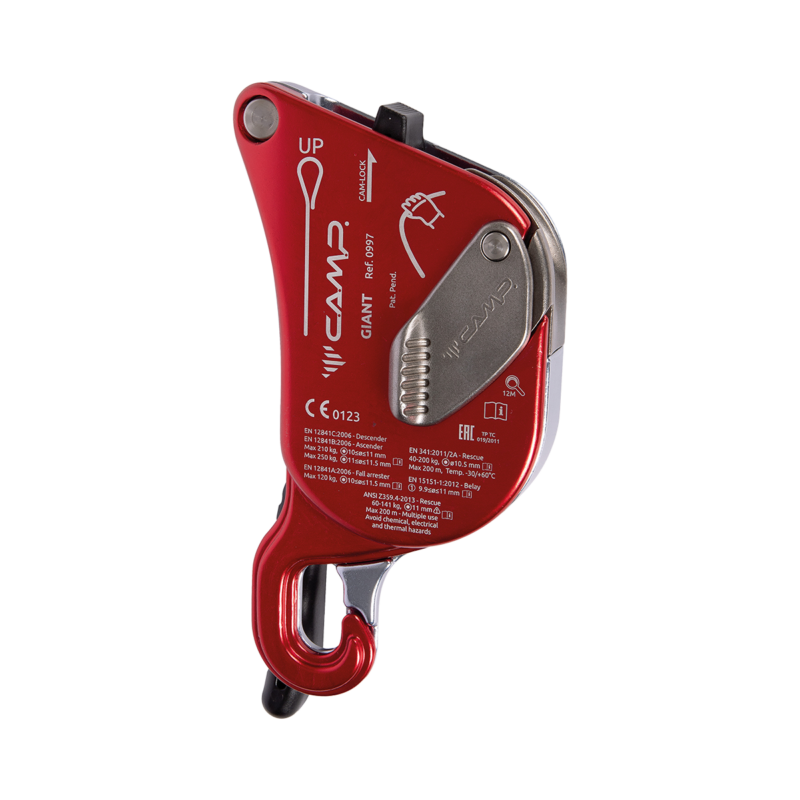 In addition to its primary function as a descender, the Giant is also certified for use as a fall arrest device (i.e. during rope transfers), as an ascender with smooth upward glide, and as a belay device for climbing, making it the most widely certified rope tool of its kind.