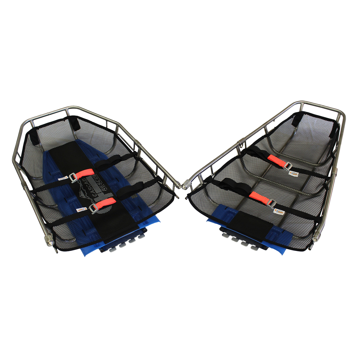 Each litter includes four Patented Articulating Lift Points (ALP’s) for either horizontal or vertical lifts, four Quick Tab Patient Straps, an integral Patient Contour padded back support and a heavy duty high density polyethylene mesh liner. Two piece version uses the trademark Cascade Toboggan FastLock System for rapid 10 second takedown/reassembly.