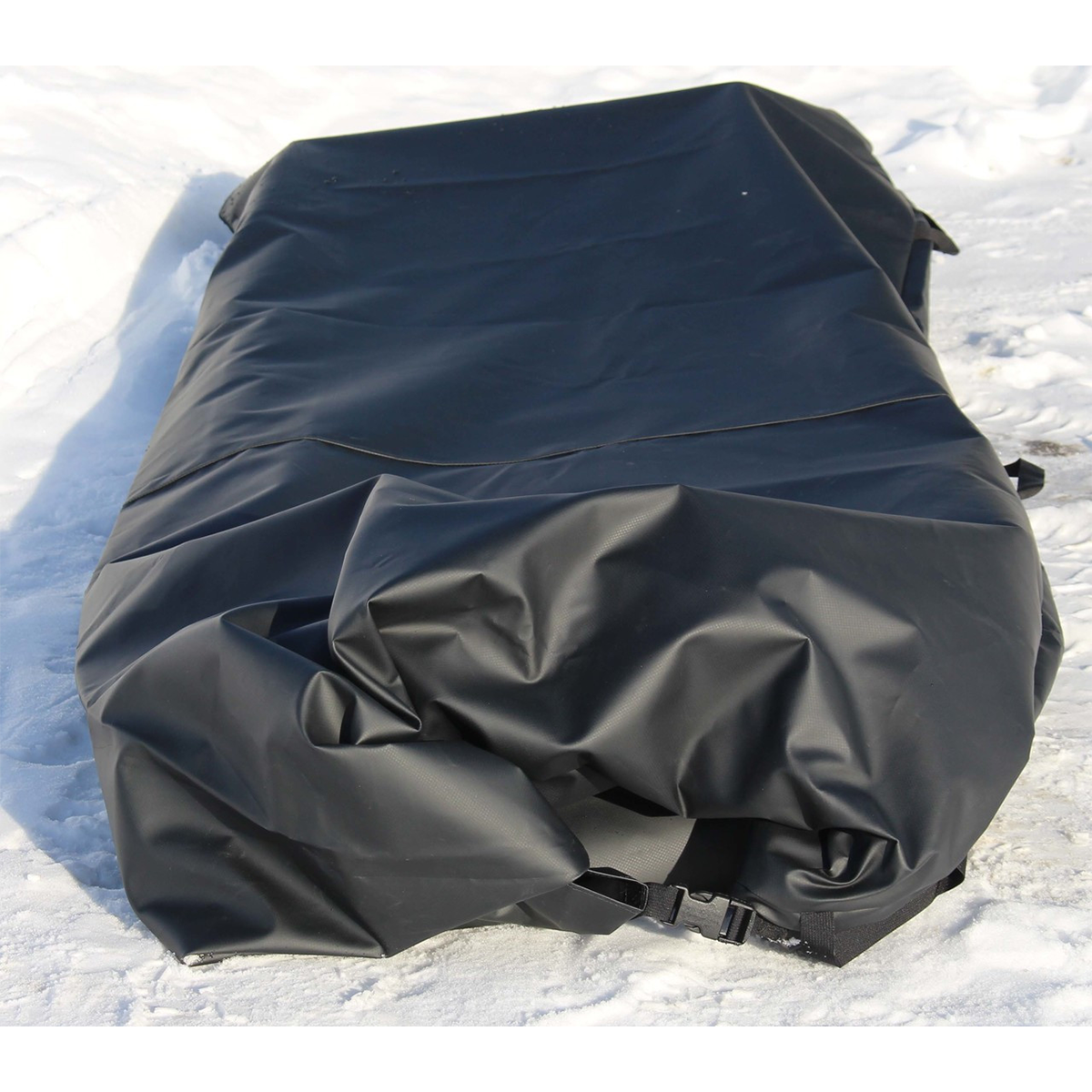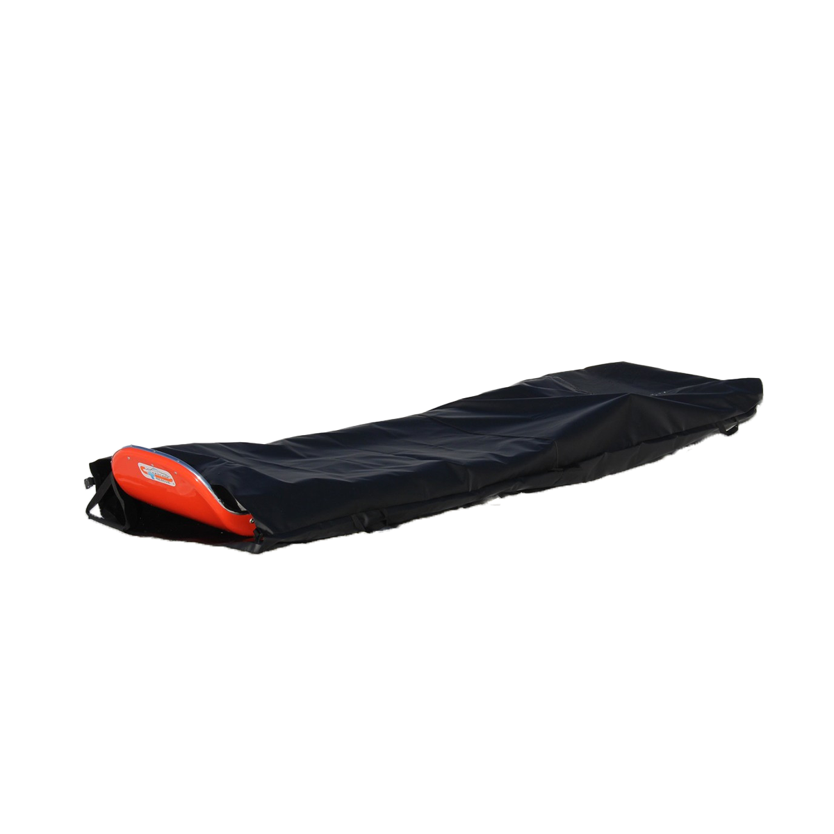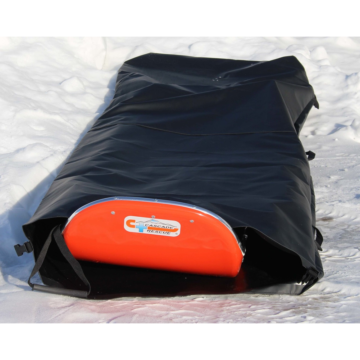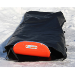 The Cascade Rescue Sled Protector offers waterproof, full enclosure for any Cascade Rescue toboggan, safeguarding against weather damage. Constructed from durable 18 oz. black polyvinyl, it withstands extreme temperatures. Secure with a Fastex buckle after sliding the toboggan in. Three carry handles provide easy transport. Ideal for cat ski operators and general gear protection.