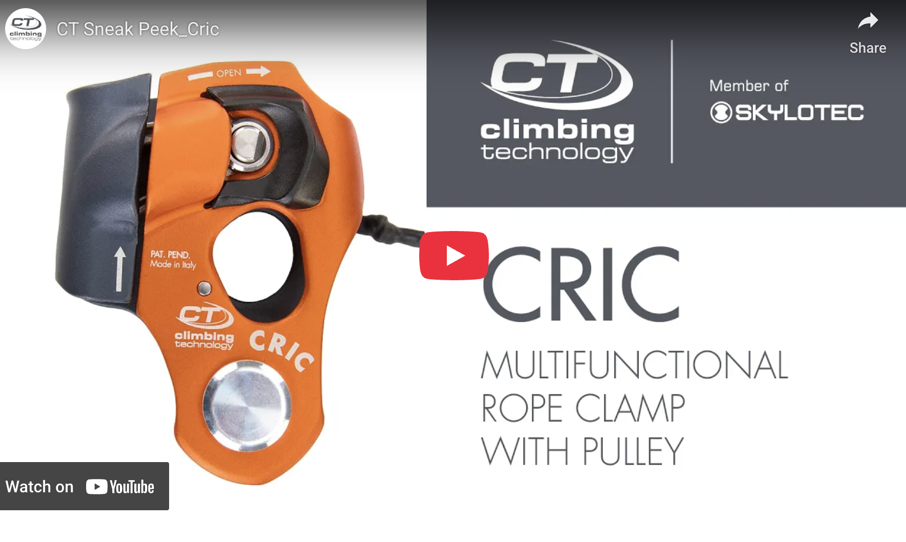 The Climbing Technology Cric is a multifunctional rope clamp with integrated pulley for rescue and rope access work. Robust, practical and intuitive, it has four different modes of operation: ascender, pulley, rope clamp/pulley or progress-capture hauling pulley.