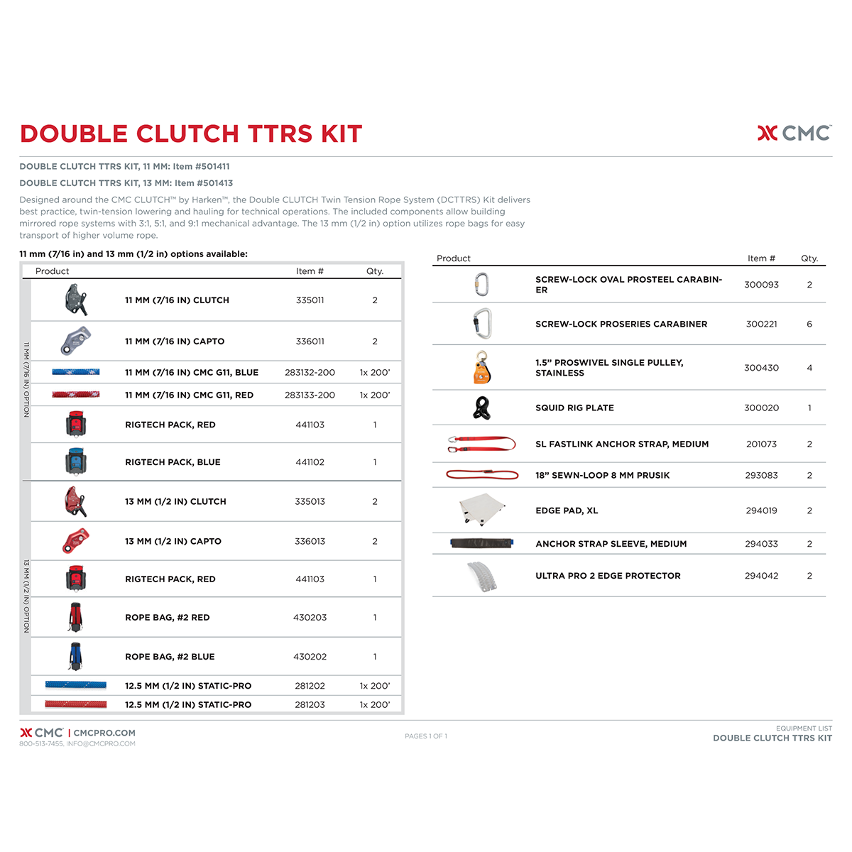 - 11 mm Kit is organized in 2x RigTech Packs and uses 2x 200 ft of 11 mm (7/16 in) next generation CMC G11™