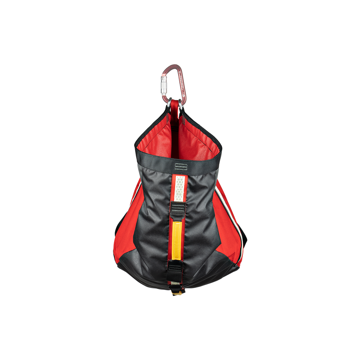 The included compression bag stores the HotSeat in a compact size. The bag can be attached to the HotSeat for carrying a helmet for the subject and stowing their personal items. Improvements to the HotSeat include a second support handle for more leverage and control, tagline attachment loops, a streamlined closure system, and illustrated instructions.