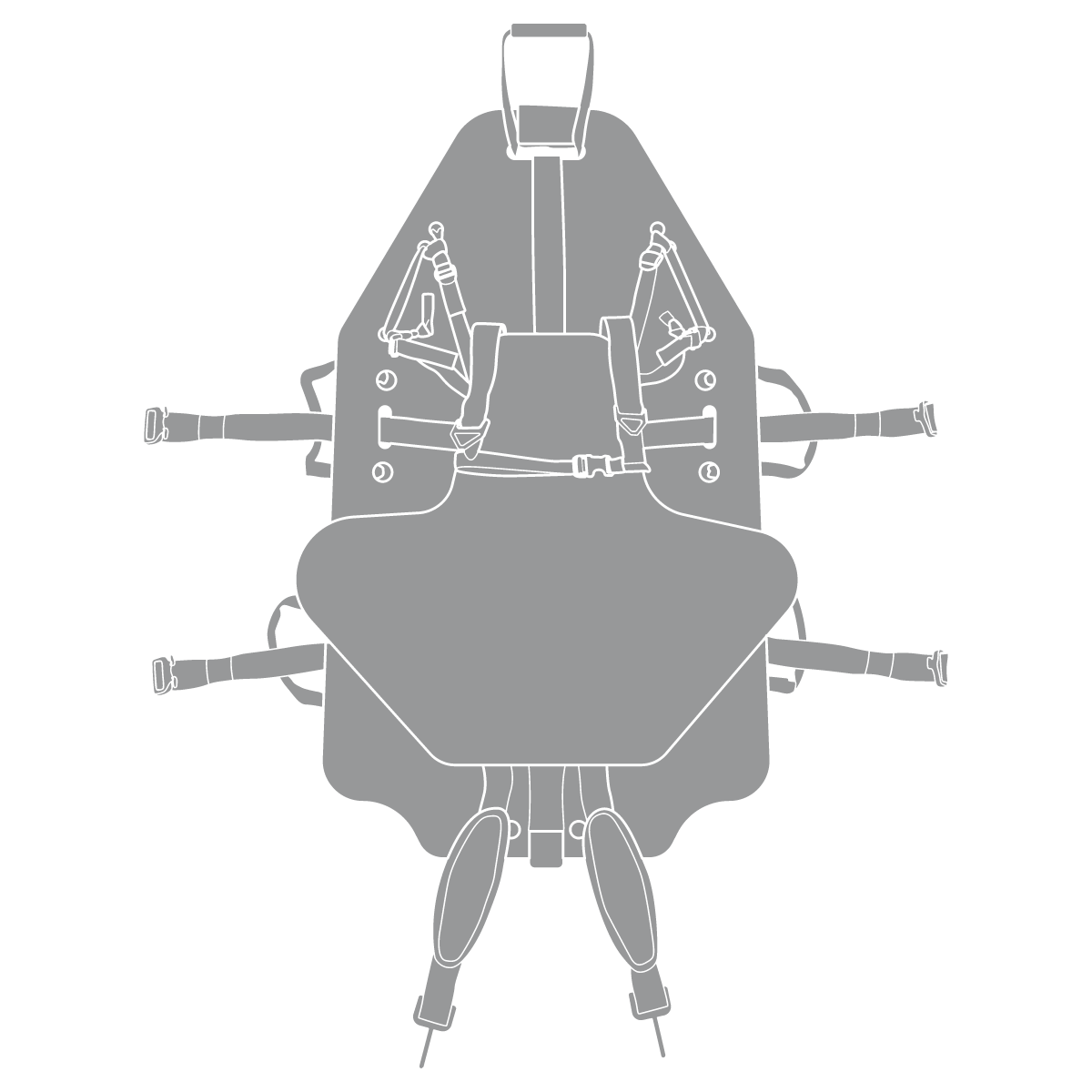 - Leg straps secured and adjustable with 2-inch web and Velcro leg loops