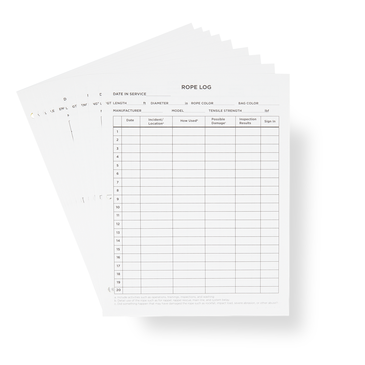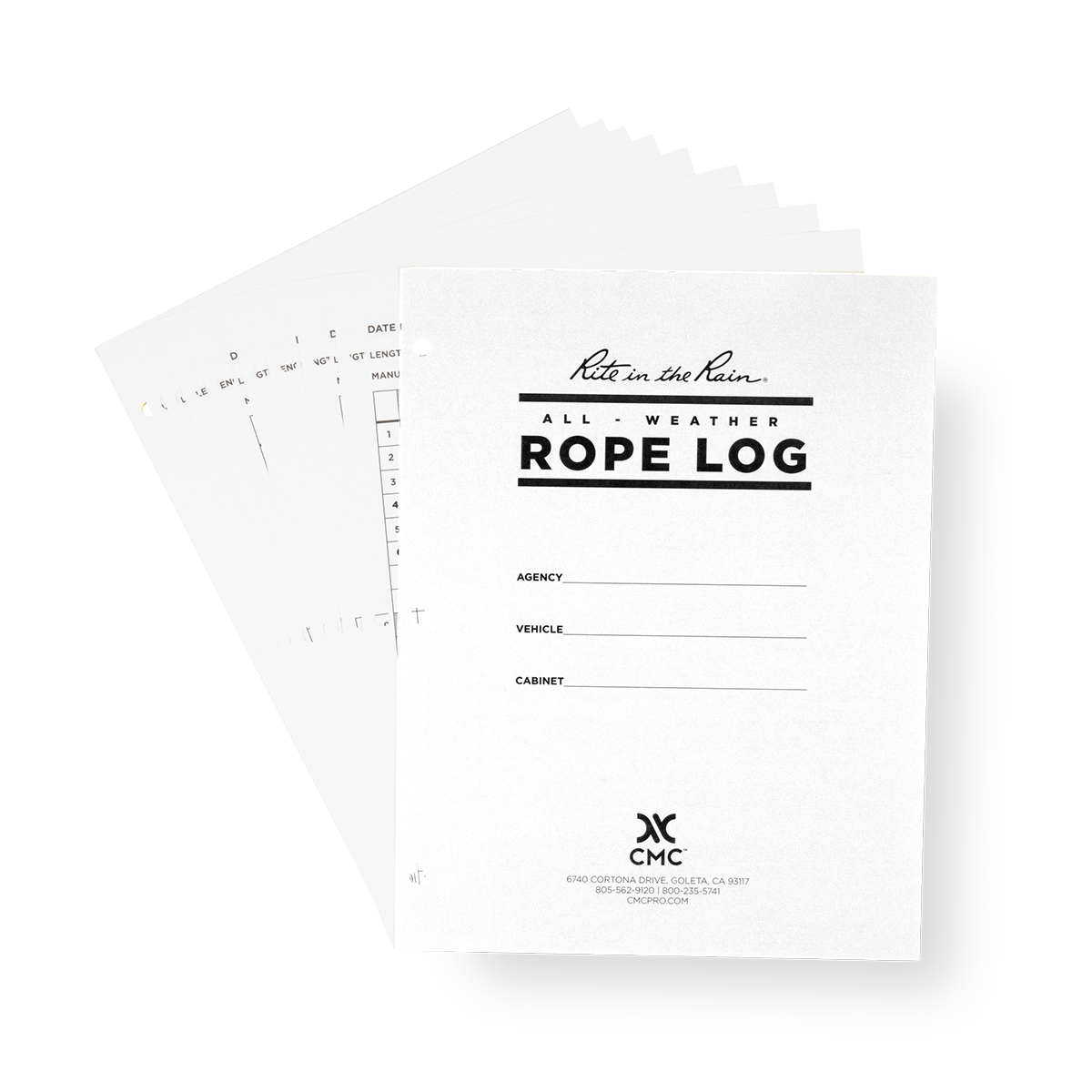 The CMC Rope Log is an All-Weather log that contains 20 rope log forms on heavy Rite-in-the-Rain™ paper. Ample space is provided to document critical lifeline information and record use and inspection. The cover includes instructions on using a rope log and on inspecting and washing lifelines. The loose-leaf, three-hole punched format allows the log to be used as a stand alone document or to be included in equipment binders.
