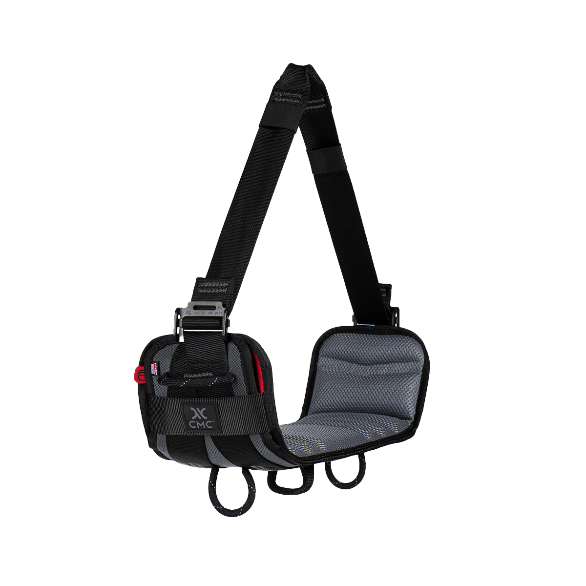 The CMC SkySaddle is a harness-mounted work positioning seat that provides the ultimate in comfort and stability while working suspended from rope. Designed to integrate with the CMC Atom Harness, the work seat is compatible with most other rope access harnesses available. The SkySaddle attaches securely to your harness using two high-strength 1-3/4 inch web straps that adjust easily in both directions.
