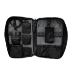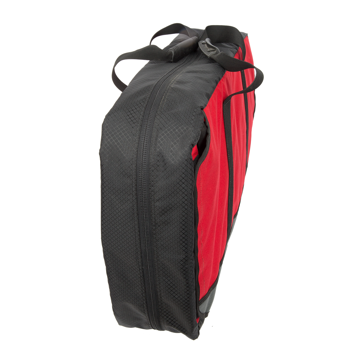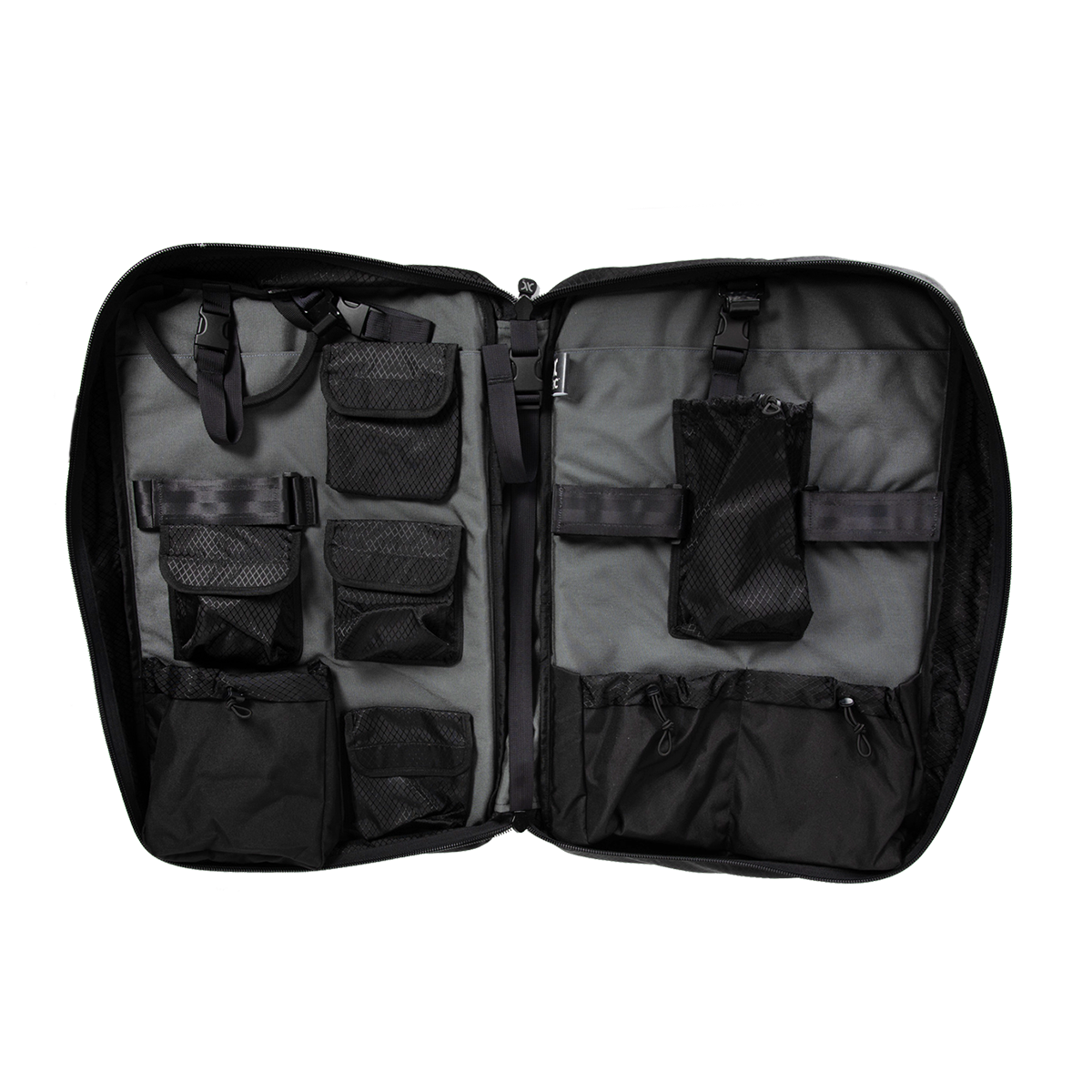 The bag can be quickly folded open on the ground or hung from the side of the vehicle using integrated gutter hooks. Pockets and hook-and-loop straps hold anchor straps attached to the CLUTCH or MPD, pulleys for mechanical advantage systems, Prusik cords, carabiners, and web. The cache is also designed to work with traditional RPM systems. A quick release strap down the center holds an XL Edge Pad, which also provides added protection down the middle for the hardware. A rear sleeve secures Ultra-Pro™ Edge Protectors. The cache fits efficiently in a truck compartment or behind the seat for quick access.