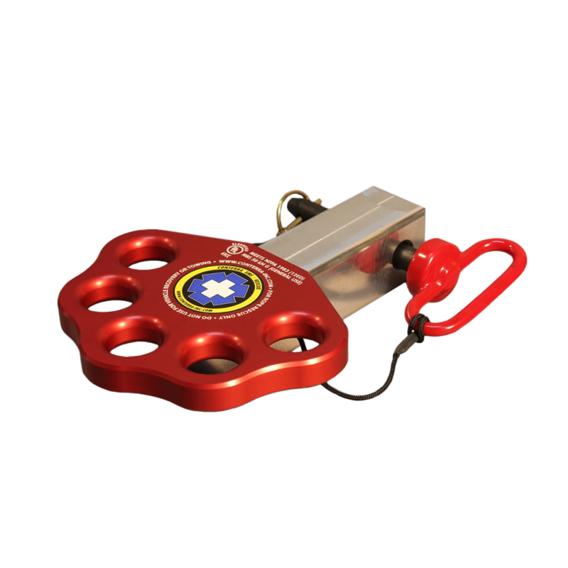 Over the years, rescuers have conducted numerous roadside rescues using vehicles as anchors, often relying on wheels, frame holes, or even tow balls. These methods were time-consuming and often uncertain in terms of safety. The Conterra Hitch-Plate provides a clear, reliable solution for securely anchoring to your vehicle during rope rescue operations.