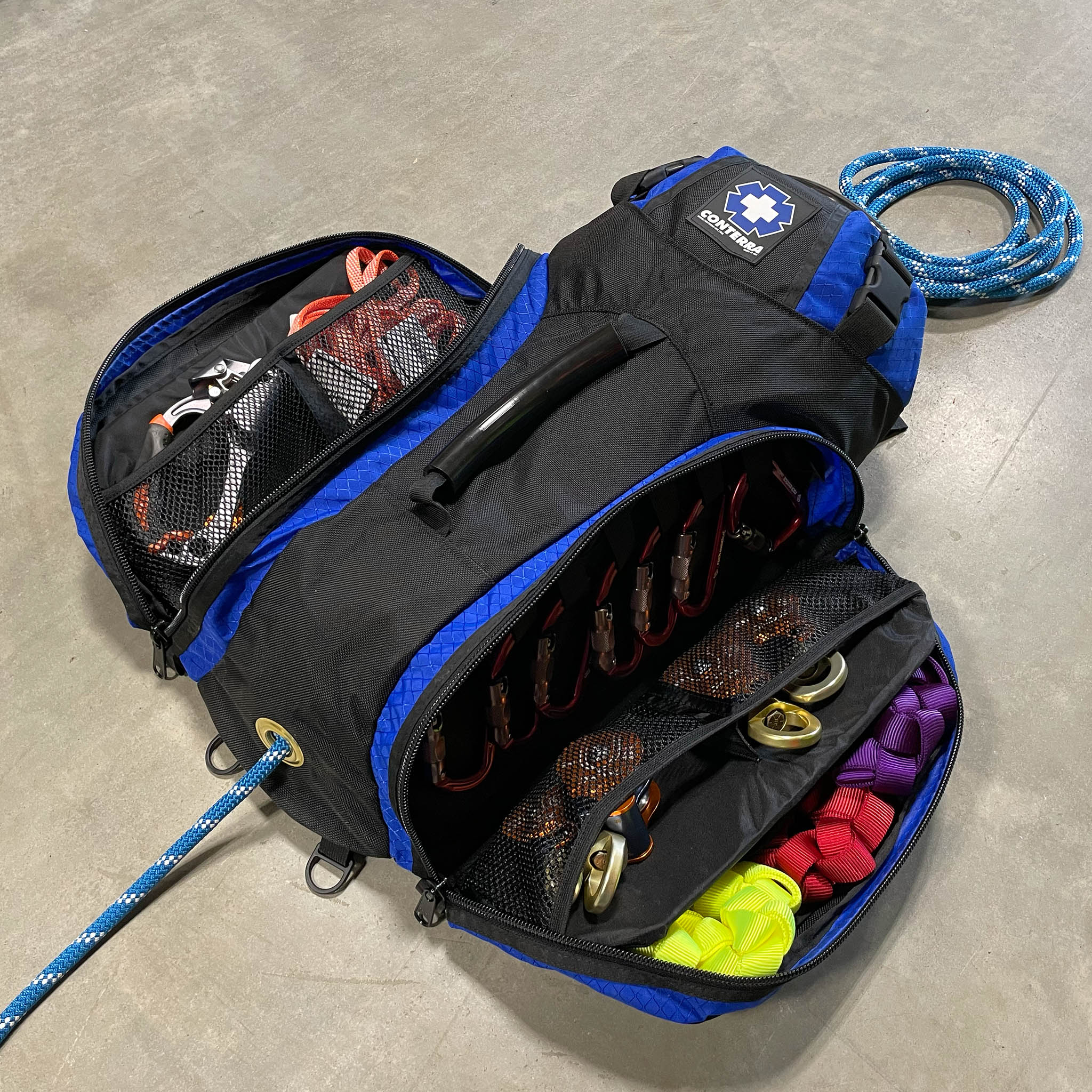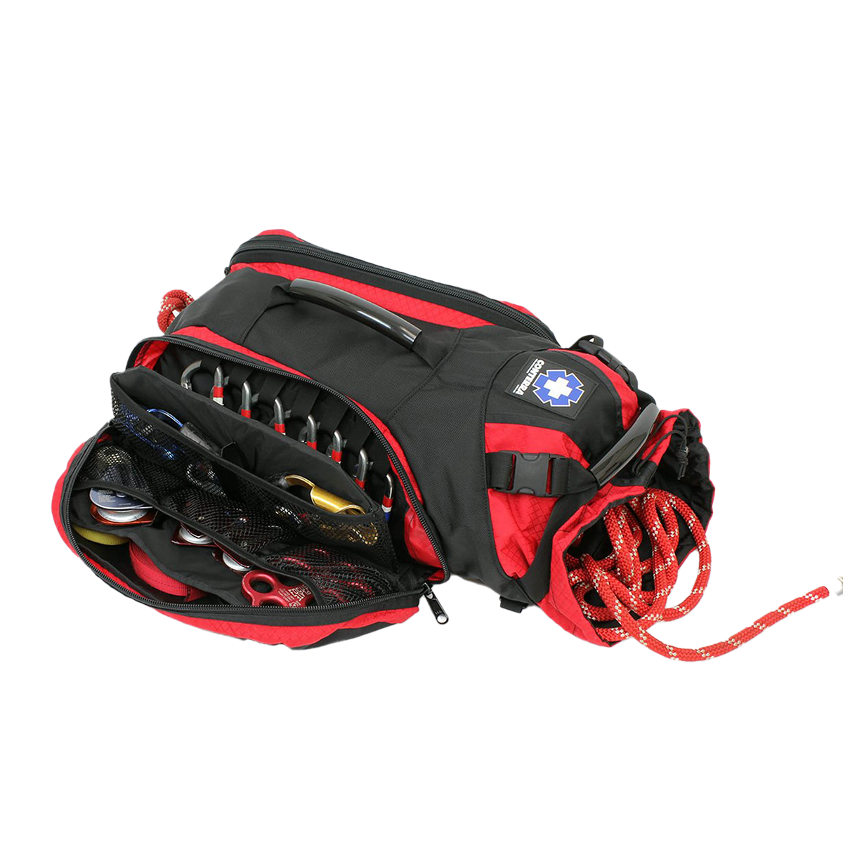 • The main pouch carries up to 100M (300ft) of 12.5 mm rescue rope.