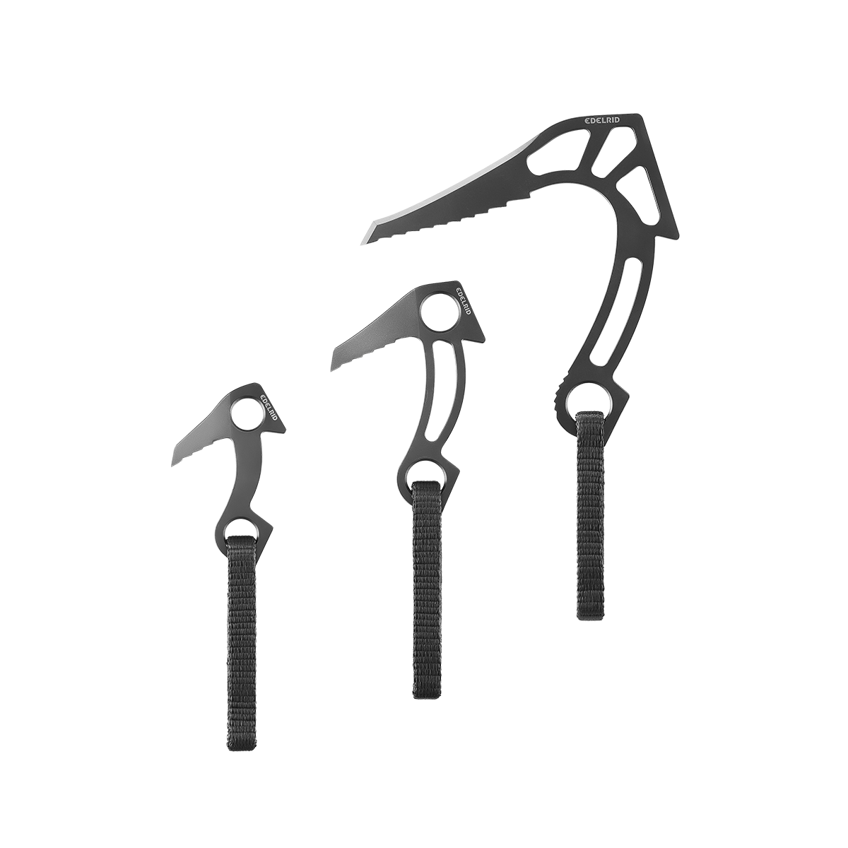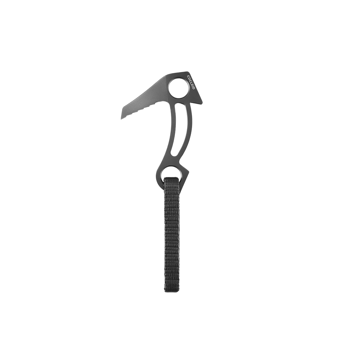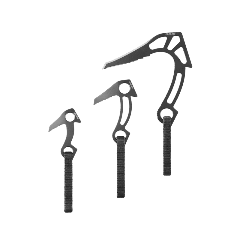 The Edelbeaks Pro can be hammered into fine cracks, joints, and dihedrals, making them ideal for tactical climbing operations involving urban structures. The cut-outs on the head and shaft reduce the weight while the wide, slender back enables the beak to be rapidly hammered in with little effort. In the case of horizontal placements, the additional carabiner opening in the head provides an alternative connection option that makes it possible to avoid high torsional loads. The Tech Web loop consists of a high-strength Dyneema® core with a protective polyamide sheath. It has a high breaking load of 15 kN and enables optimized rope run-through.