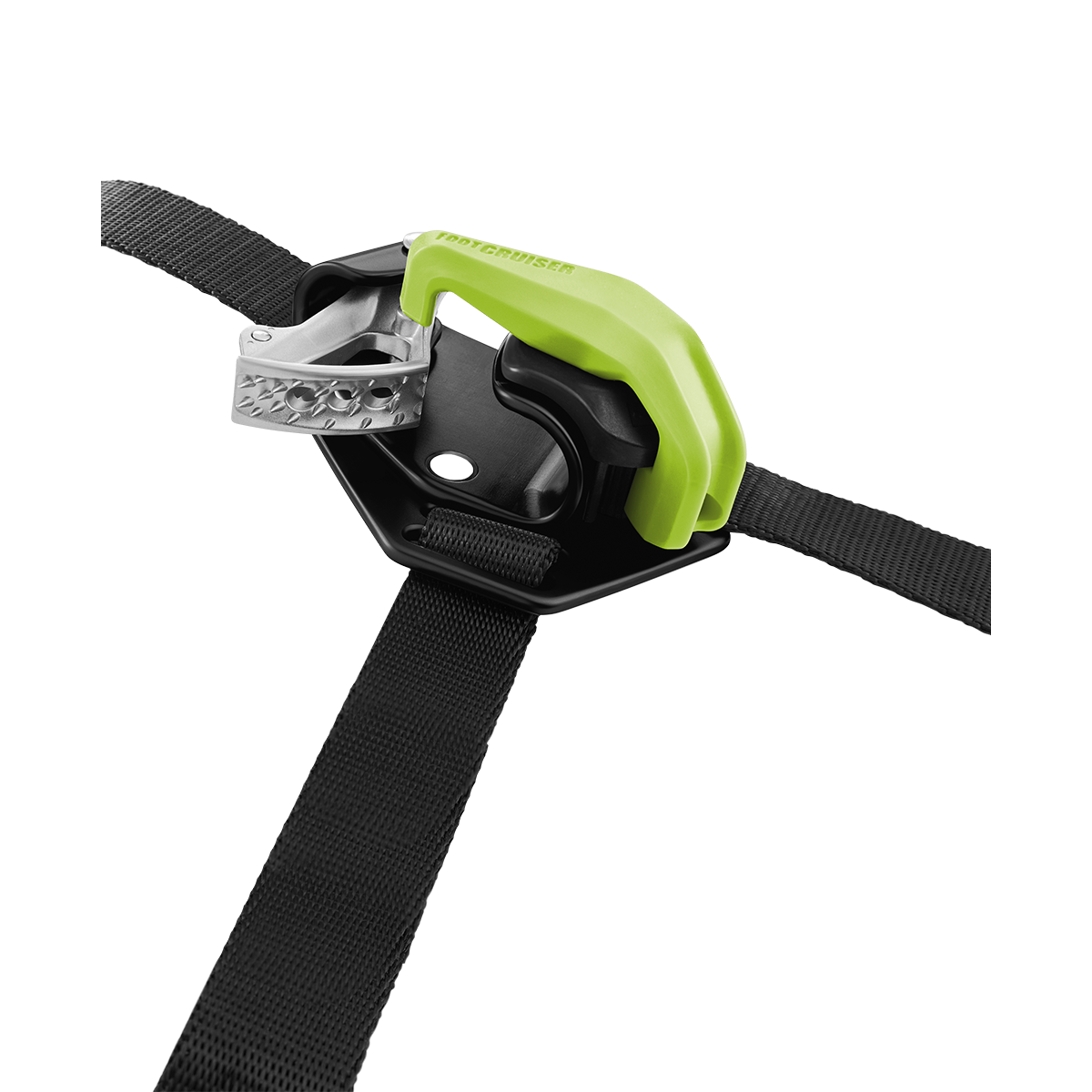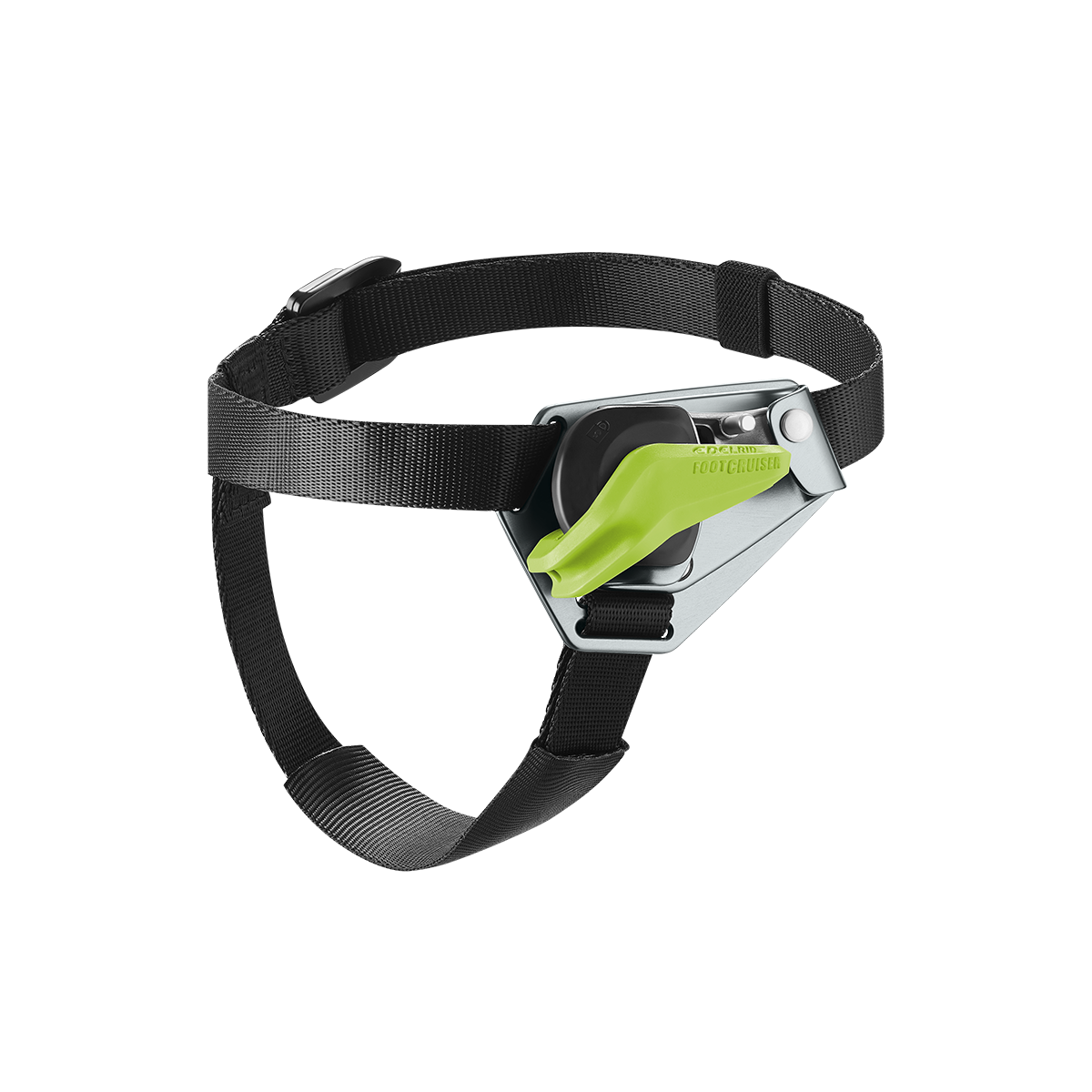 Using a foot ascender is a particularly efficient and low-fatigue method of climbing single ropes. However, conventional foot ascenders can accidentally disengage from the rope if it is unfavorably positioned. The Foot Cruiser incorporates a rope clamp that prevents accidental disengagement from the climbing rope. The locking mechanism is easily operated with the other foot and can even be removed if necessary, making it quick and easy to disengage from the system in an emergency. Thanks to the low spring tension, the ascender runs extremely smoothly, making climbing easier and preventing premature fatigue. At the same time, a robust, stainless steel cam provides optimum bite, even on icy or muddy ropes. The adjustable foot strap ensures secure fixation of the foot and has an abrasion protector to prevent premature wear.