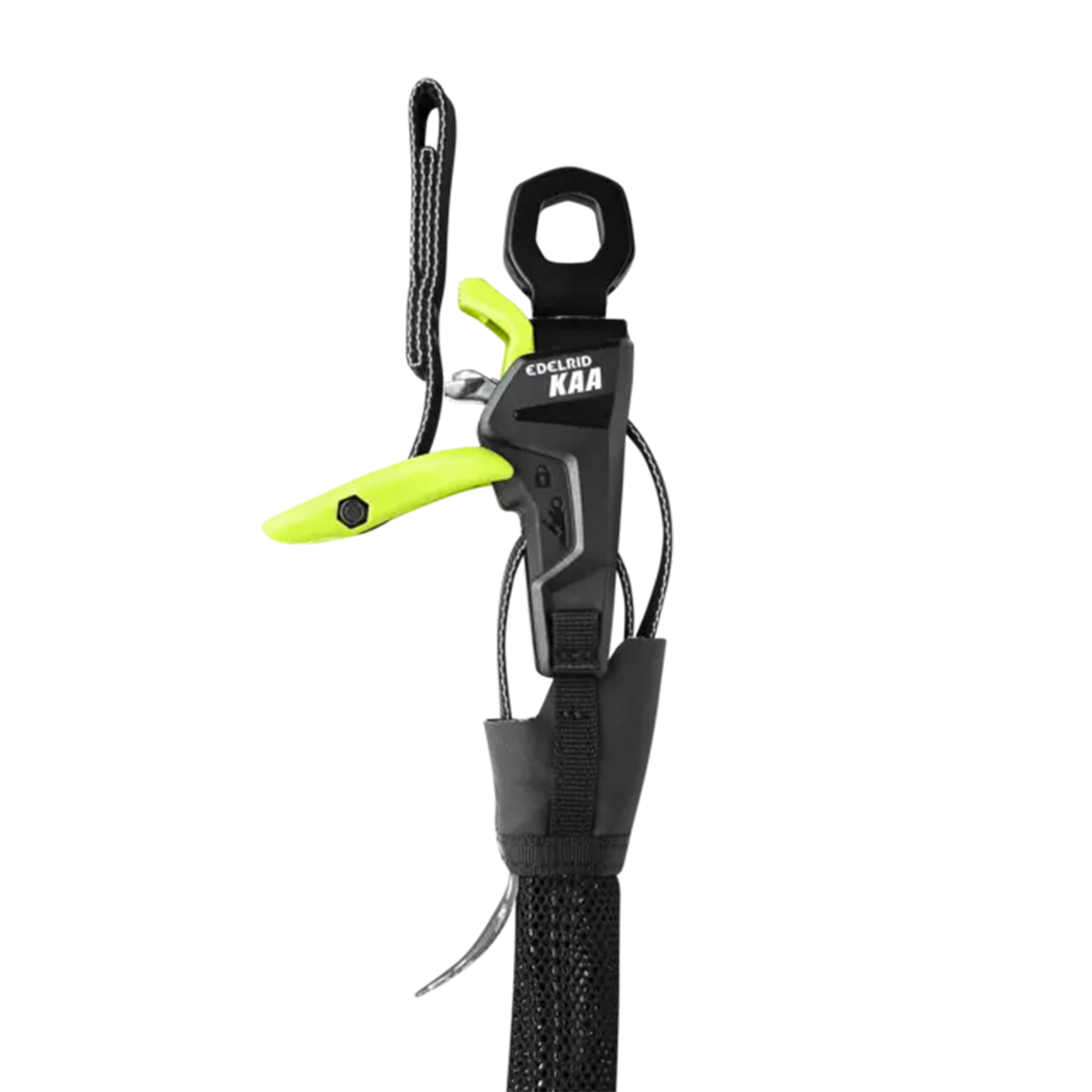 The Edelrid KAA is a prefabricated haul system for tensioning systems or lifting people during rescues. In addition, as the KAA is certified to EN 354, it can be used for workplace stabilization, as a restraint system (open/closed), and for controlled lowering. Its strap-based construction makes it the most compact and lightweight system on the market.
