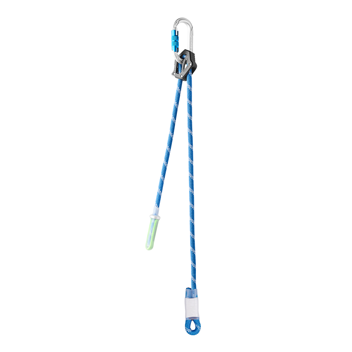 Easy to use, length-adjustable lanyard for self-belaying, positioning, and progression on structures, anchor points, or railing ropes, or when climbing ropes. The system consists of the popular Performance Static 10.5 mm, an Oval Power triple lock carabiner, and the innovative rope clamp. This enables length adjustment even under load — allowing the lanyard to be shortened or lengthened at any time!