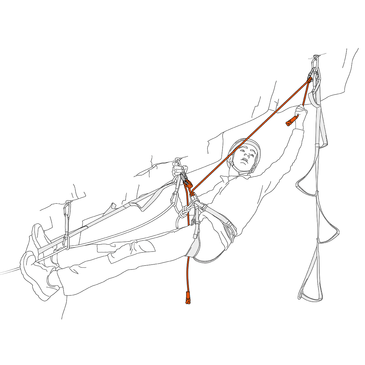 • Double positioning lanyard with two adjustable arms designed for aid climbing: