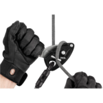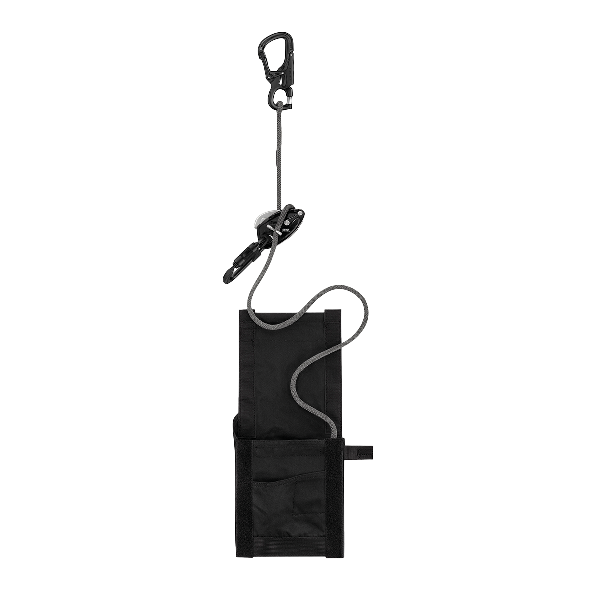 The Petzl EXO EASHOOK OPEN is an individual evacuation system, with the easy-handling EASHOOK OPEN carabiner. It has a self-braking system for quickly giving slack, controlling and stopping a descent, and limiting the force transmitted to the user in the event of a fall. The open directional point serves as a rope guide during descent, while allowing the rope to be removed to facilitate short rope ascents. It also includes a rope that resists wear and high temperatures, an Petzl Am’D connector with Captiv positioning bar, and a bag for transporting and attaching the system directly to the harness.