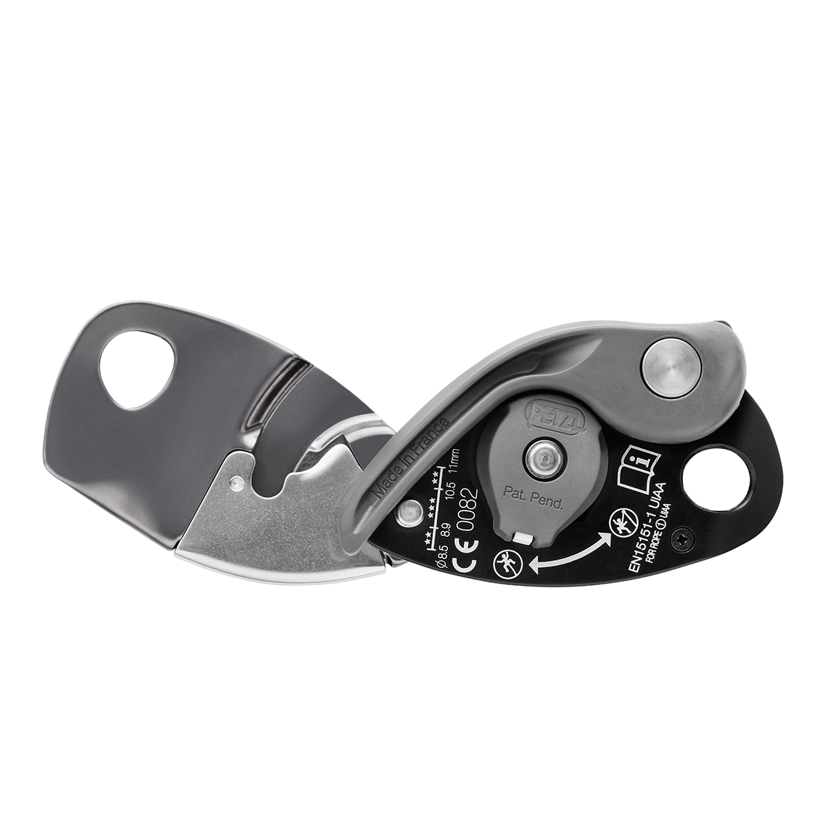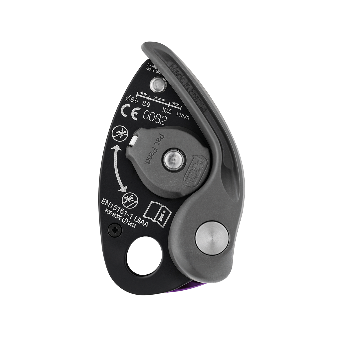 • Compatible with 8.5 to 11 mm dynamic single ropes and optimized for those 8.9 to 10.5 mm