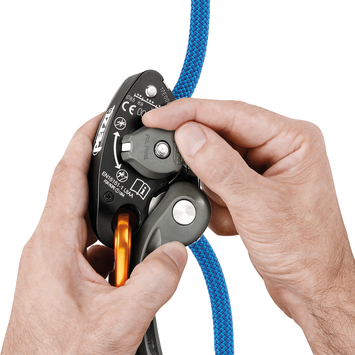 • Feeding slack and catching falls are accomplished using techniques standard to all Petzl belay devices, always keeping a hand on the brake side of the rope