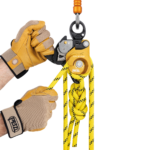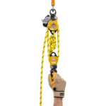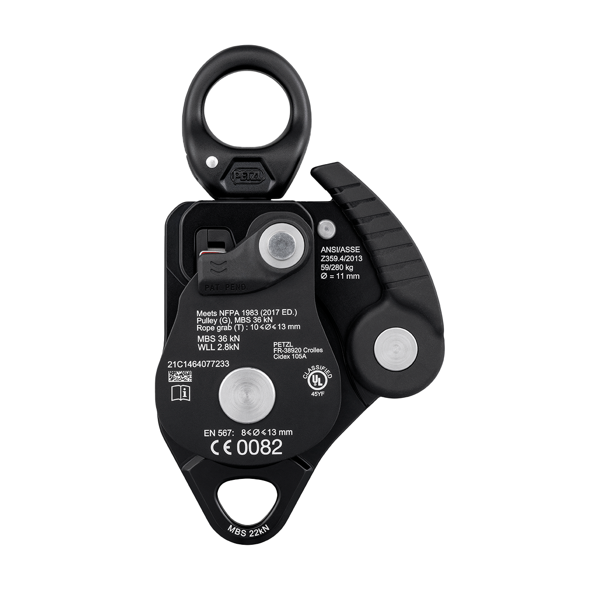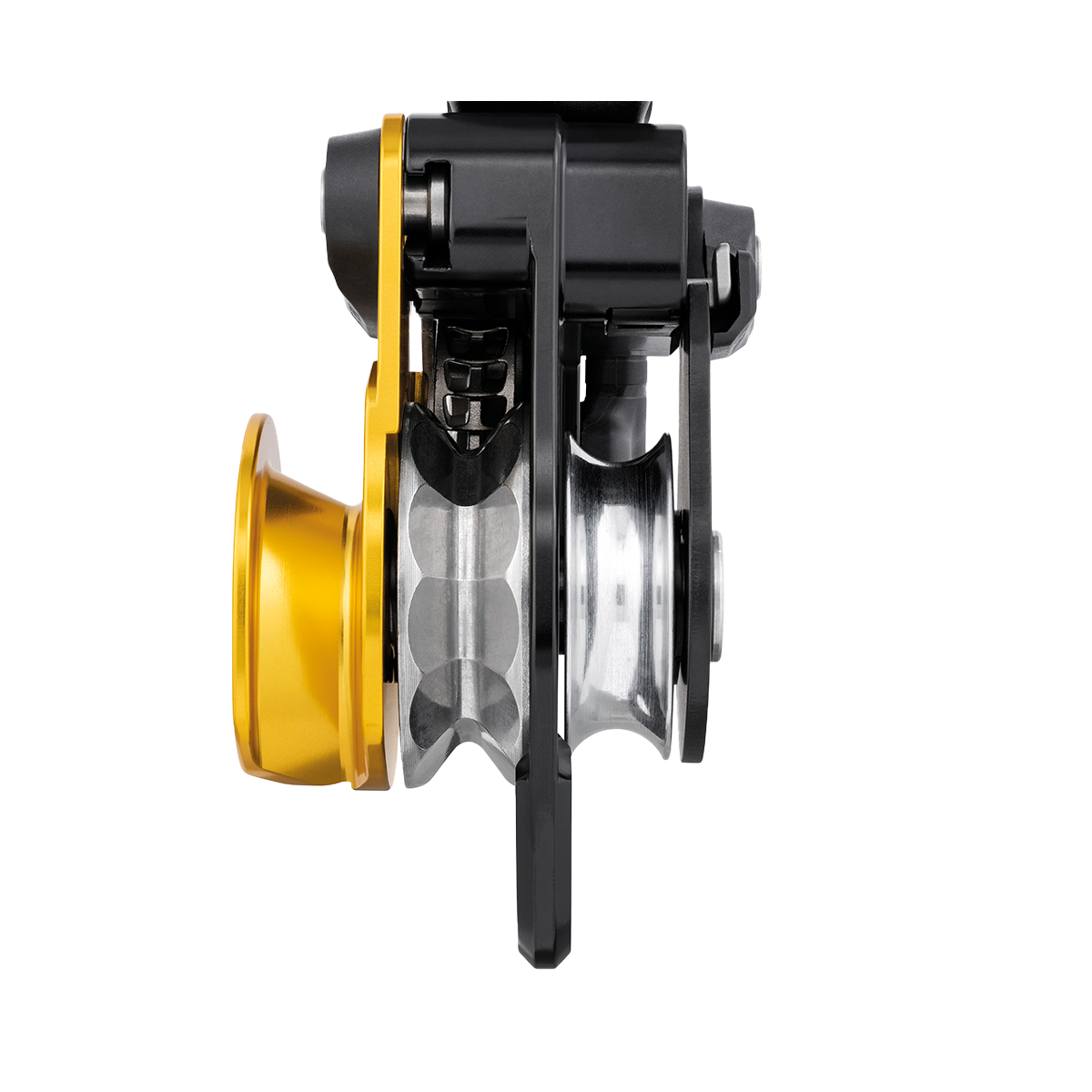 - Main faceted sheave with single-direction rotation provides excellent efficiency when hauling and adds friction zones with the rope for additional braking when lowering heavy loads
