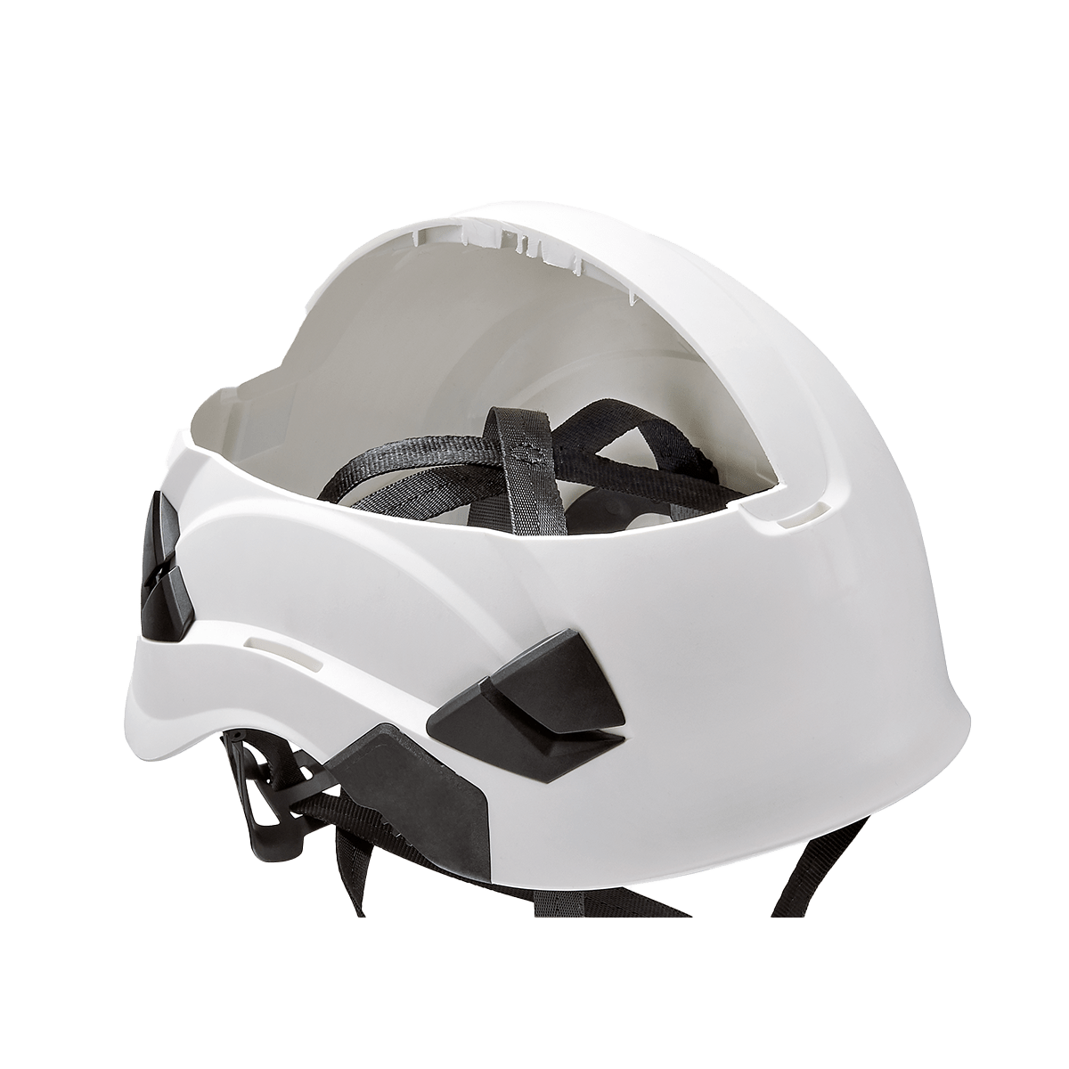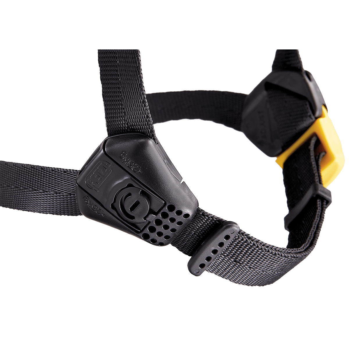 - DUAL chinstrap allows the worker to adjust chinstrap strength in order to adapt the helmet to different environments: work at height (EN 12492) or on the ground (EN 397). The clip has two positions corresponding to two different uses: high strength to limit the risk of losing the helmet during a fall, and low strength to limit the risk of strangulation if the helmet is snagged while the user is on the ground.
