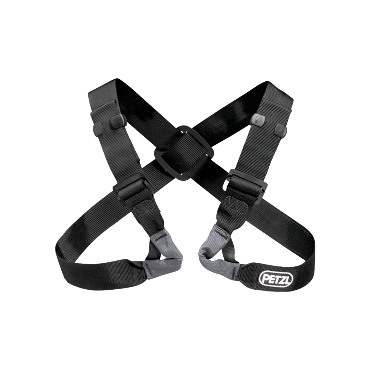 The Petzl Voltige chest harness helps keep the climber upright while hanging or rappelling. For use only in combination with a sit harness.