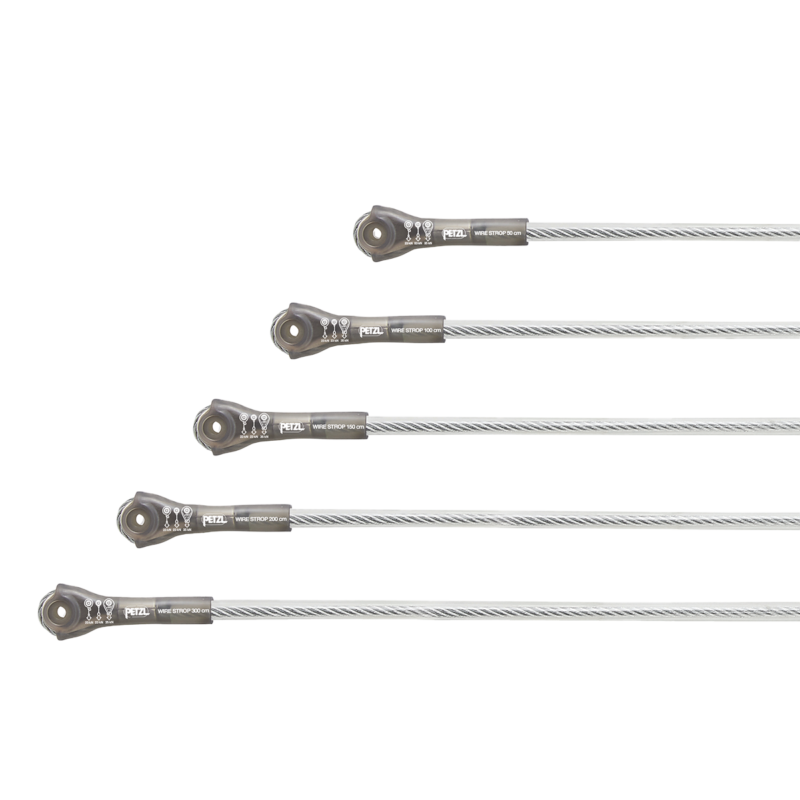 The Petzl Wire Strop is an anchor strap made of 6.5 mm diameter galvanized steel with two terminations of different sizes. It offers several configurations for setting up an anchor: directly to an anchor point or around a suitable structure. The plastic sleeve helps keep the connector in position and facilitates clipping.
