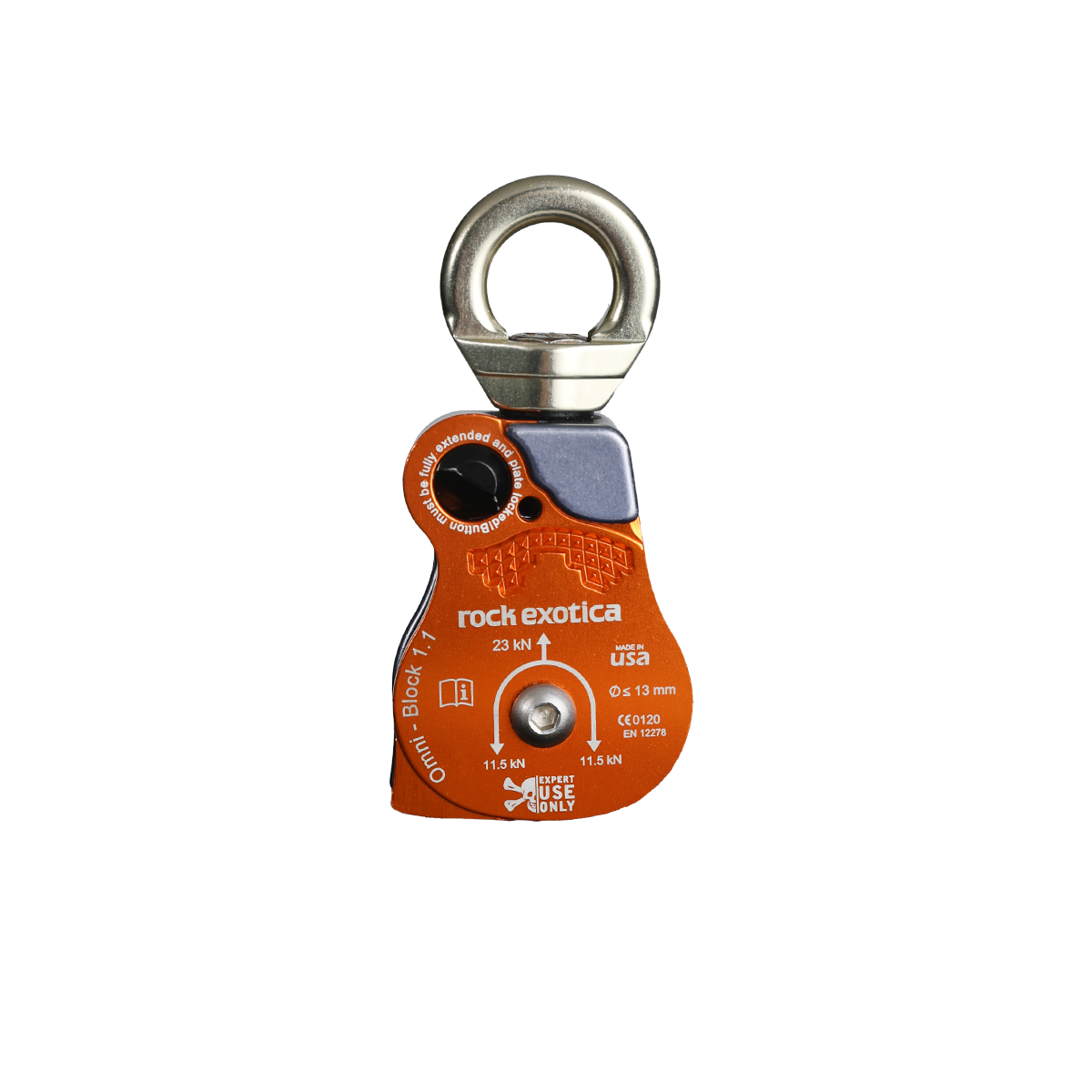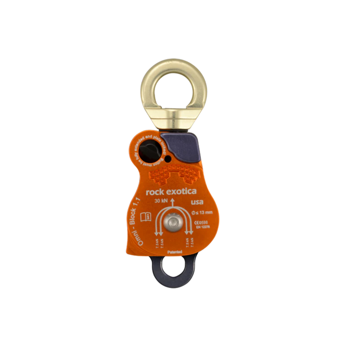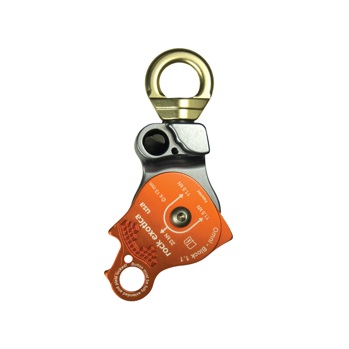 The Omni Swivel Pulley is made the same unique way that many of Rock Exotica products are made—from solid material. The design and function of the pulley require a strong core from which the sheaves, side plates, and swivel top must connect. For this we rely on the capability of our state of the art machining centers to take a solid block of aluminum and cut away material to create this integral part.