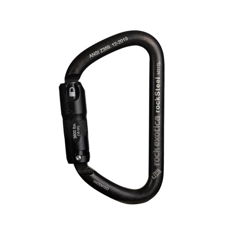 • The rockSteel offers an impressive strength to weight ratio, a large gate opening and precise handling characteristics due to CNC machined surfaces. Professionals appreciate the smooth keylock surface that won’t snag your rope.