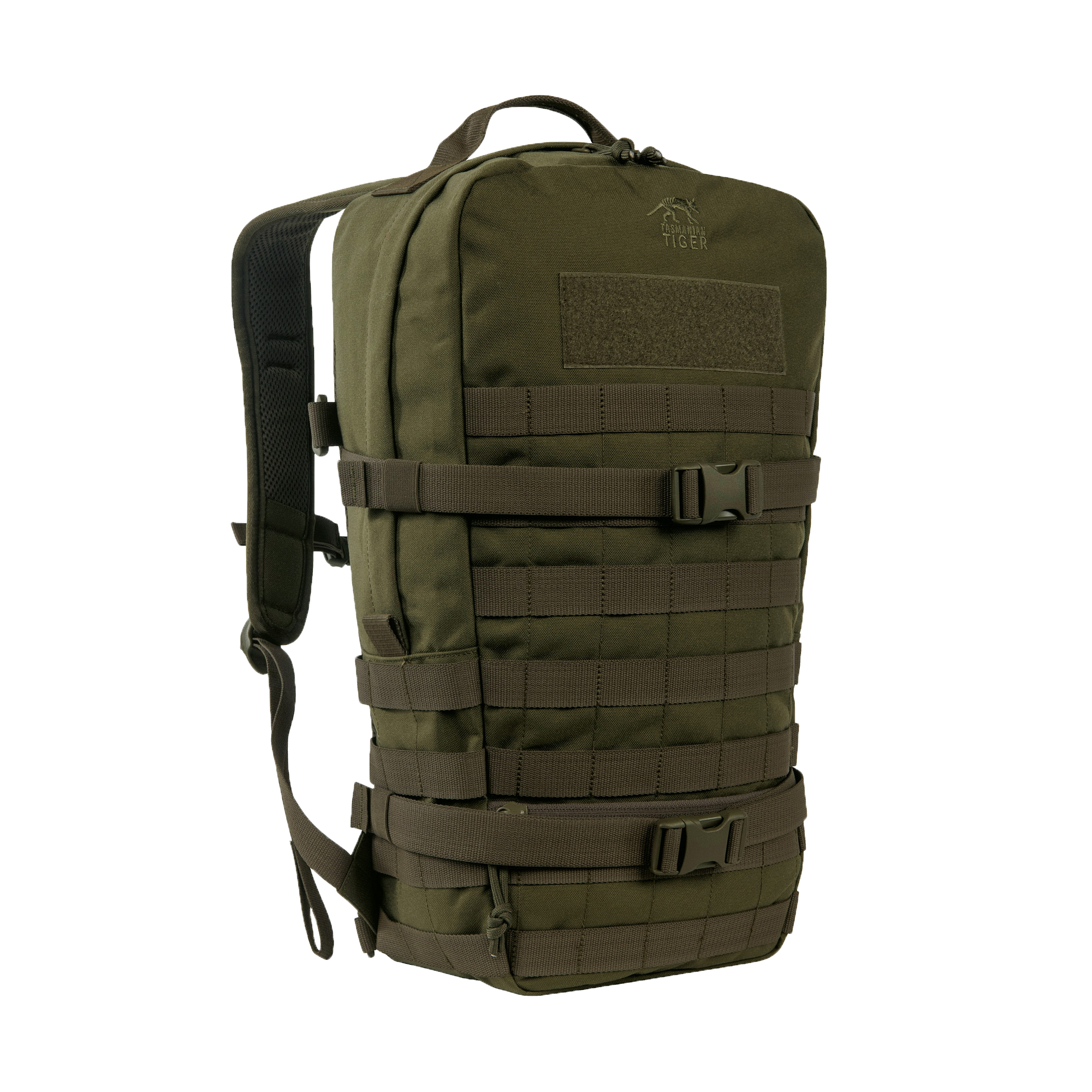 The TT Essential Pack L MK II has a large main compartment and a small, flat zipped front pocket. Two completely circumferential compression straps reduce the volume if necessary, while the Molle system on the front and sides can be used for individual expansion. The backpack is also equipped with a drinking system preparation.