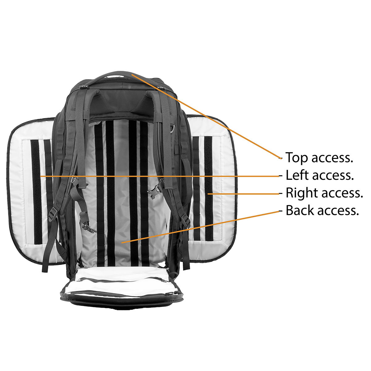 • Lid Designed for Efficiency – Full interior access, with a flip-back lid that offers wide-open entry, making organization faster and more efficient. A zippered opening in the lid allows for convenient passage of ropes or oxygen lines while keeping the pack securely closed. For delicate items, there’s a fleece-lined pocket to protect eyewear or other sensitive gear. Additionally, a clear pocket is included, ideal for storing packing lists or quick-reference documents, keeping everything you need at your fingertips.