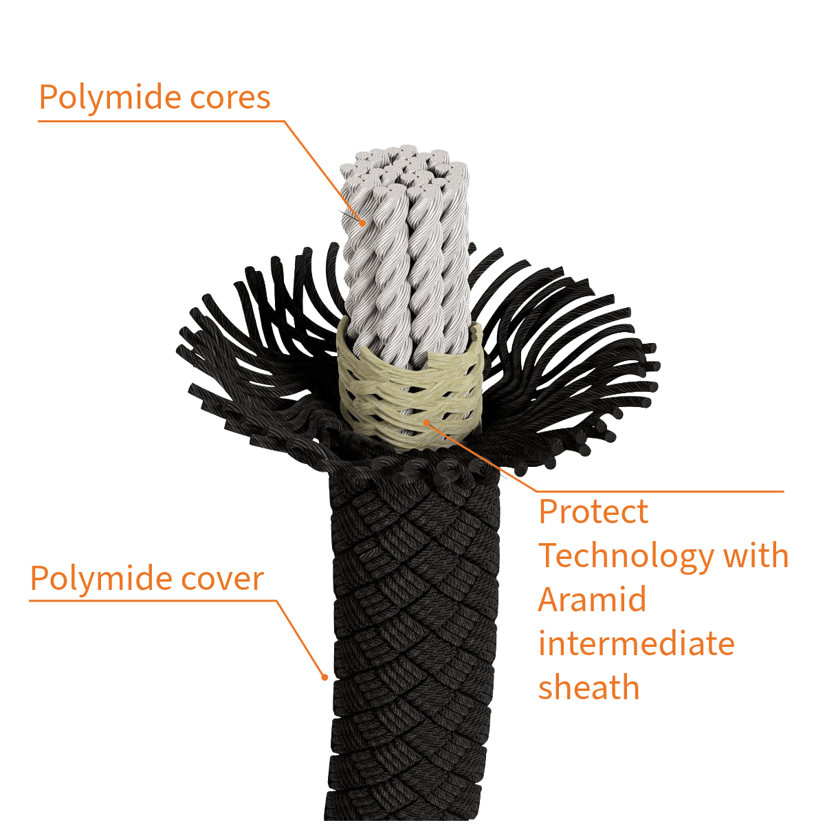 The cutting-edge static Rescue Assault rope, fortified with the revolutionary Aramid intermediate sheath called Core Protect technology, is engineered to exceed all expectations in the most demanding situations. This new ropes offers an additional level of safety to your daily work especially when it comes to sharp edges.