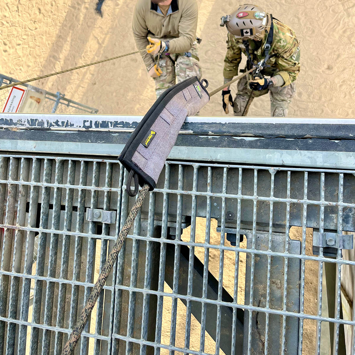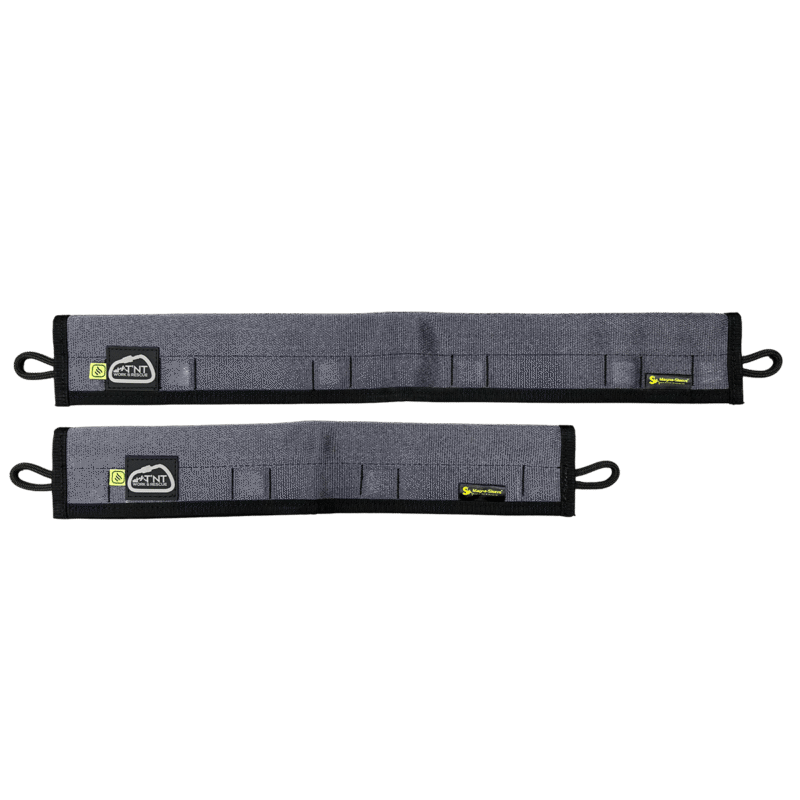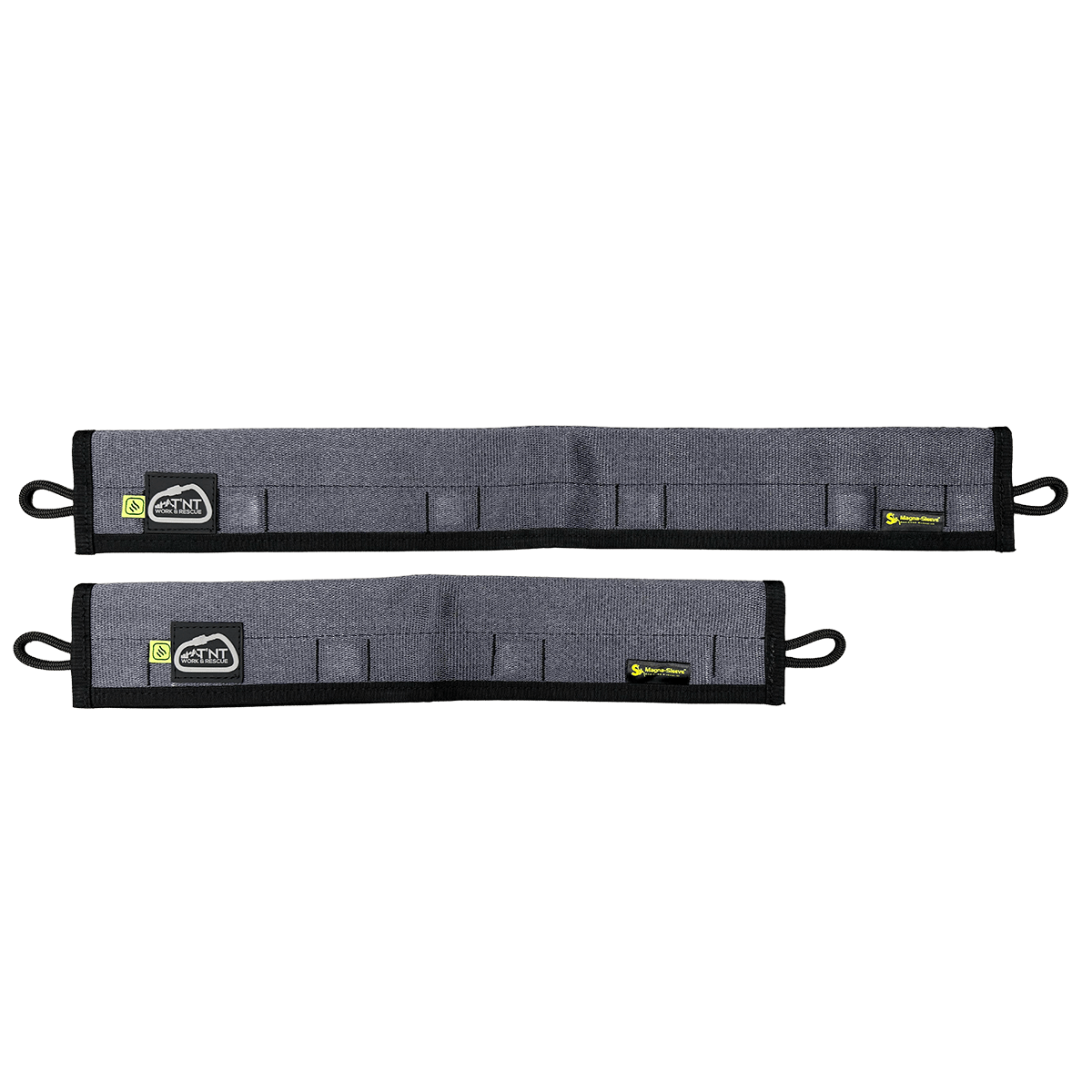 The same great STREP edge protection you know and rely on now with magnets. The interior sleeve features strips of Shoregrip which helps to secure the sleeve in place on a single or double rope, preventing the need of prusiks or rope grabs. Sewn loops on both ends of the sleeve allow for additional attachment points, and can easily be carried on the user’s harness.