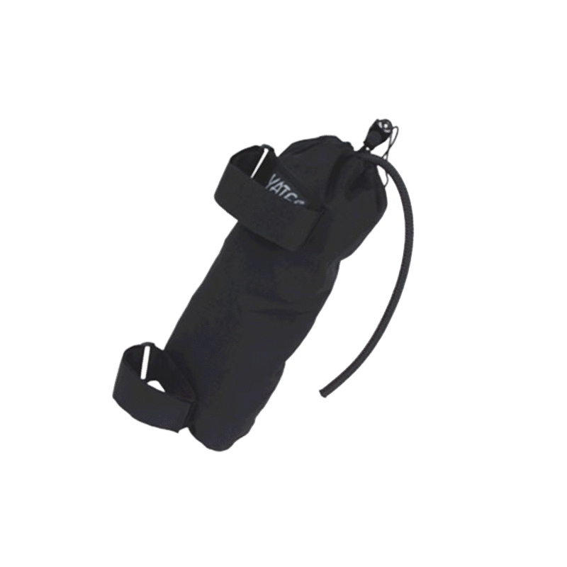 Velcro brand hook-and-loop is used on leg straps to securely fasten the rope bag to the lower leg. Black cordura with single draw cord closure